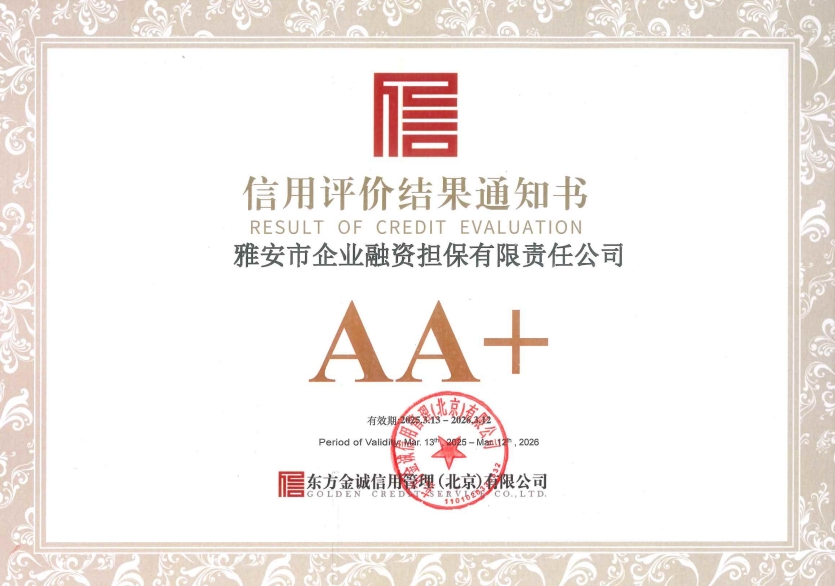 市擔(dān)保公司2025年信用等級獲AA+
